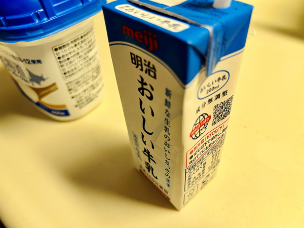 牛乳は紙パック200mlの製品なのですべて飲み干したが、