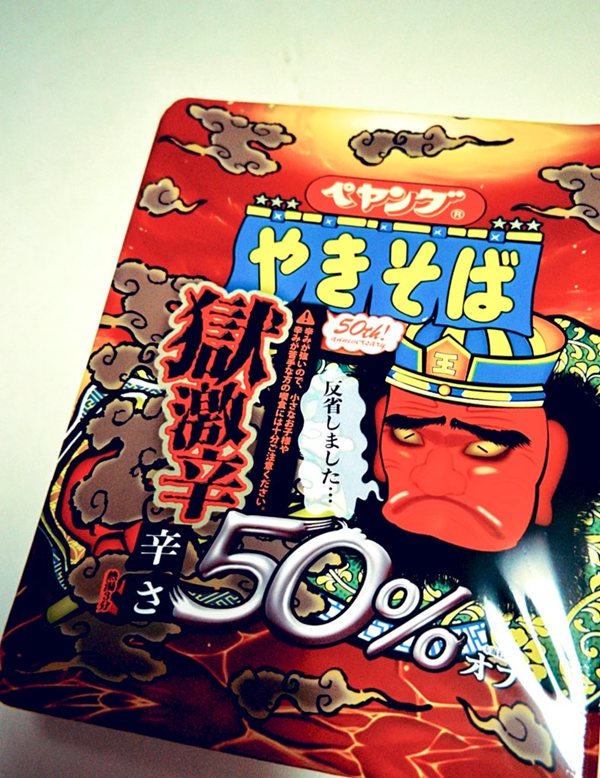 その後、なぜか突然パッケージの閻魔様に「反省しました」と言わせた「ペヤング 獄激辛やきそば 辛さ50%オフ」が販売された。